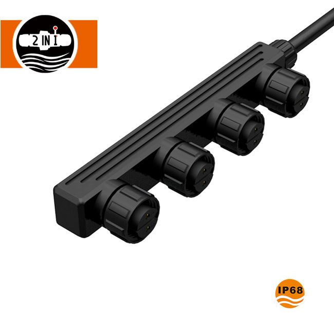 F Form Multiply Output M19 3 -pinners vanntett kontakt Den kan matche med M19 3 -pinners kontakt, 1 ut 2 ut, 1 ut 3 ut, 1 ut 4 ut, 1 ut 5 ut tilgjengelig. M19 F-form 3-pinners kontakt oppfyller IP68 vanntett vurdering, vanntett, fuktsikker, regntett, solsikker og antikorrosjon, den brukes mye for LED-gatelys.